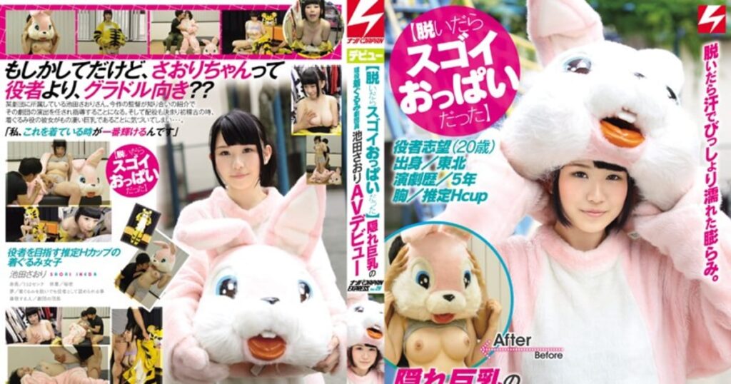 着ぐるみ脱いだら爆乳が弾け飛び!さおりの隠れ巨乳がエロく揺れまくる…