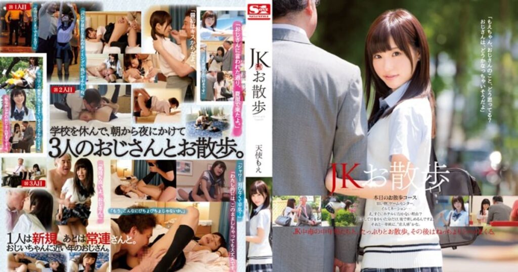 JK天使もえ、中年おじさん3人に散歩中フェラ中出しイキ狂い♡